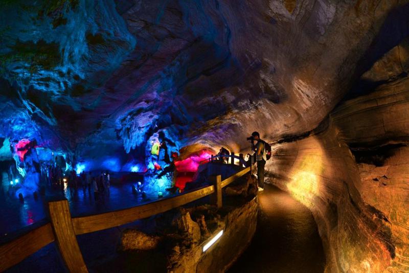 夏天洞里的温度比外面清凉多了。下洞是一条极古老的地下溪河,你可以坐船游览,在水洞里行船!这一仿佛置身于“水晶宫殿”般的神奇之感,亲们可自行脑补!