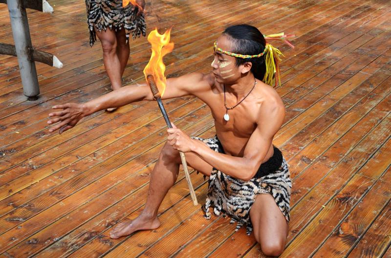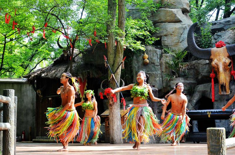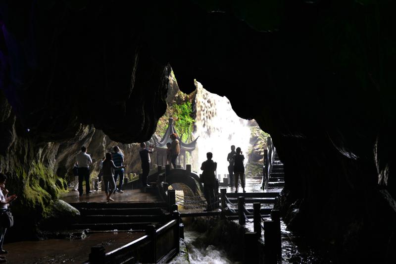 从景区门楼向善卷洞方向走去,途中会经过野人谷,这里不定期会有“野人表演”,可以看到演员扮成野人表演喷火等节目。