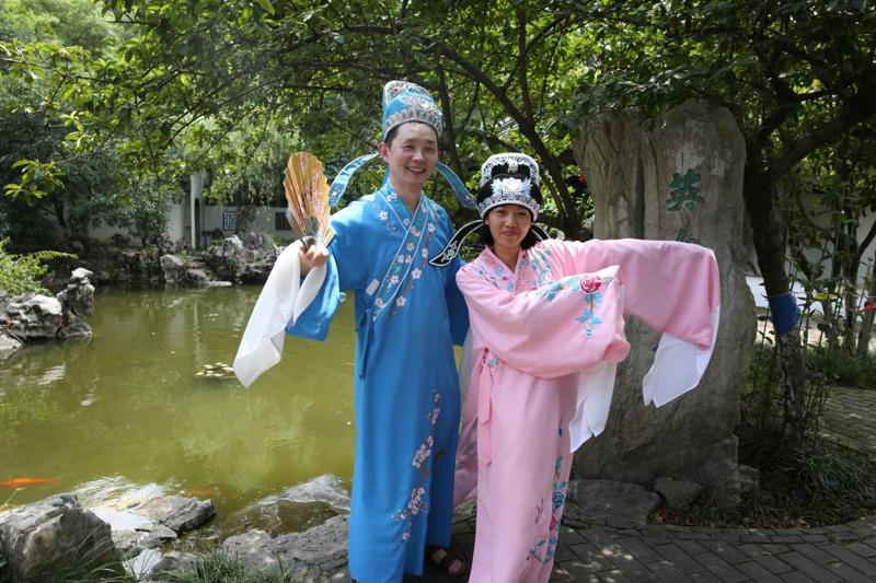 在善卷洞的后区域,赏一段梁祝戏曲,这里还有“晋祝英台琴剑之冢”、“祝英台读书处”等景观,在英台读书处可以穿古装拍照留念。