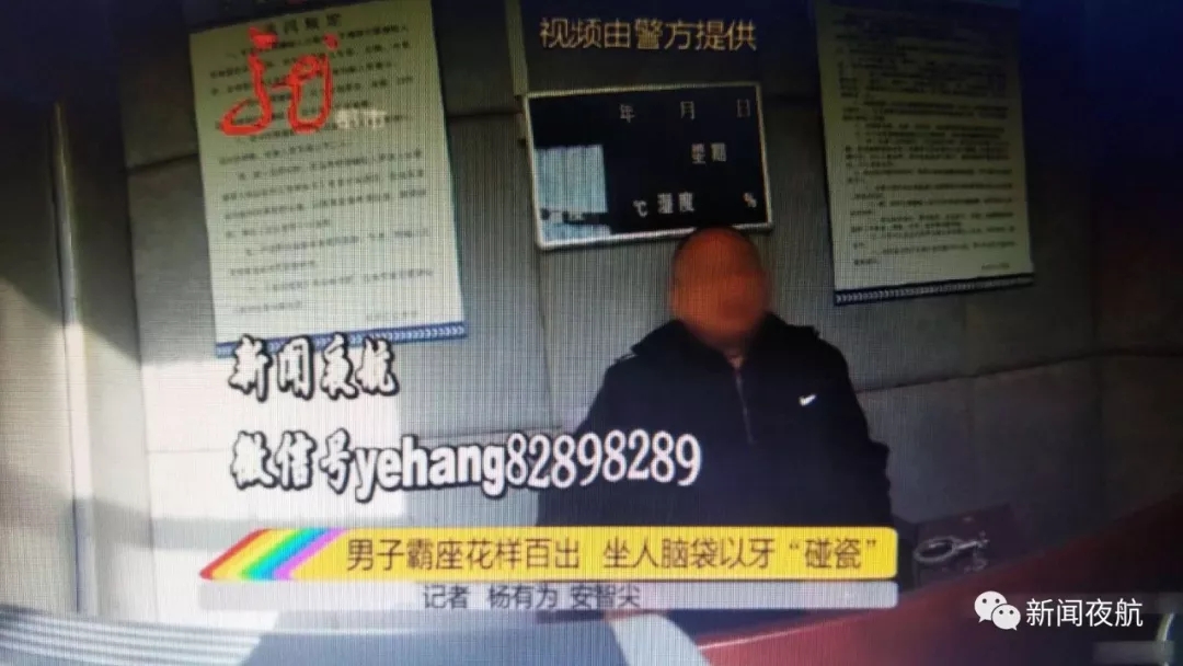 牡丹江铁路公安处虎林站派出所民警王楠:这名行为人当时就拽住那名熟睡男子的头,直接往那个玻璃边上撞,然后同行的老乡也感到诧异,就赶紧起来问发生了什么事情。然后这名男子又转向了另外几名老乡,对他们不同程度地厮打。