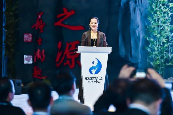 河南省文化和旅游厅厅长姜继鼎在致辞中表示,河南是中华民族和中华文明的重要发祥地之一,孕育了太极和少林两大功夫流派。温县陈家沟被中国武术协会命名为太极圣地,全球150多个国家和地区数亿人习练;每年到陈家沟学拳的人数达5万余人次,其中外籍学员8千余人次。禅宗祖庭少林寺被称为中国功夫发源地,每年有10万学生到登封习练少林拳,少林寺连续6年代表国家接纳非洲学员学习功夫,每年到少林寺学拳的人数达到12.8万人次。此外,围绕“中国功夫 老家河南”主题,河南省推出了中国功夫体验游、中原山水游等多条精品线路,中国功夫已逐渐成为继长城、熊猫之后的第3张中国旅游名片。