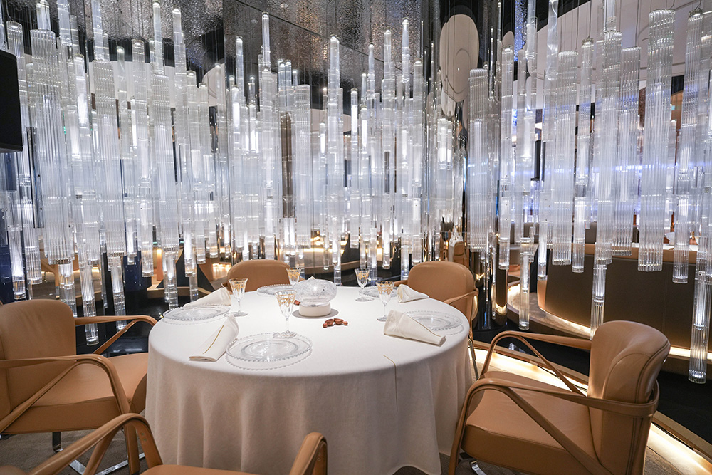 由已故建筑大师扎哈·哈迪德女爵士设计的摩珀斯,以其突破性的线条为空间注入独特的建筑诗意;杜卡斯餐厅晶莹璀璨的标志性水晶吊灯与臻选器物,更为这场盛宴提供无与伦比的舞台。晚宴现场除了有悠扬的大提琴演奏,还特別邀请了屡获殊荣的中国香港女高音歌唱家陈海兒带来动人演唱,让宾客在优雅的用餐氛围与精致料理的交织下,沉浸于一场跨越文化边界的多重感官体验。