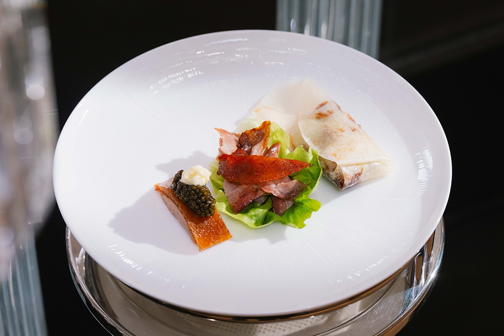 七道佳肴由两位大师及杜卡斯餐厅总廚Cedric Satabin带领的团队精心呈献,每一道菜品均体现了他们对顶级食材的深刻理解与无限创意,展现了法式精湛技艺与中式美学意境的巧妙平衡。