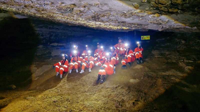 从“九天之上”到“地心之下”,天眼研学营地的探洞之旅实现奇妙穿越。幽暗洞穴中,千姿百态的钟乳石在灯光下折射出梦幻光影,指尖触碰湿润岩石,可感知亿万年地质变迁的纹路,耳畔水滴声清脆如“地心脉搏”。达人@秋月记直呼:“这种‘上天入地’的奇幻体验,唯有黔南独一份!”