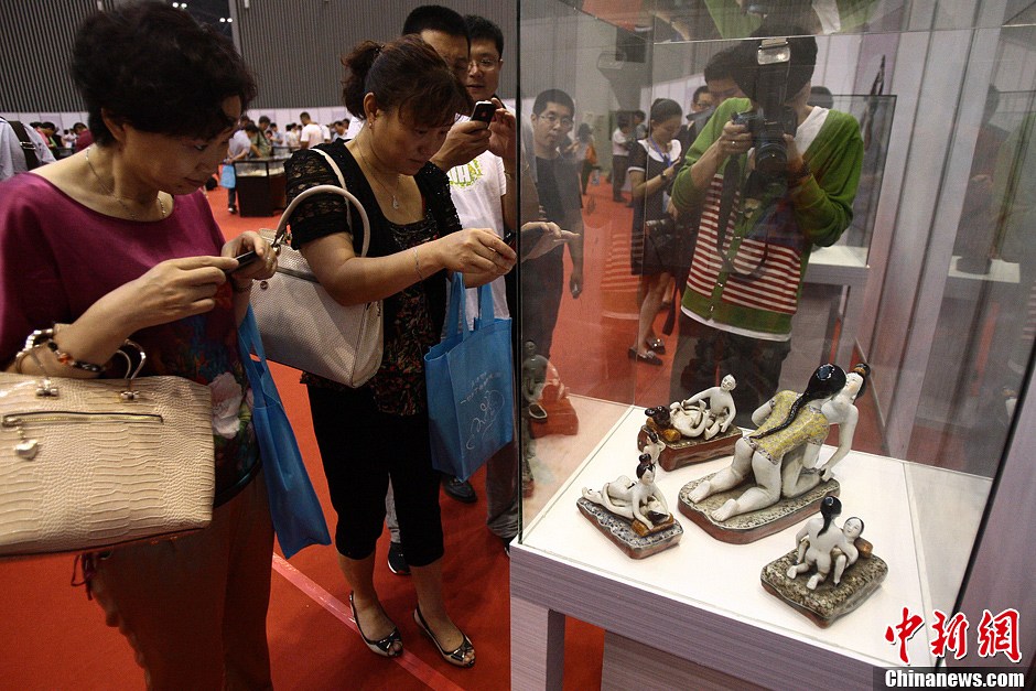 7月18日上午,“性健康文化博物馆”首次在山西太原在中国(太原)煤炭交易中心亮相,在现场看到各类字画、雕塑、瓷器、玉器等形式展现的生殖崇拜、性伦理、性教育等内容。当日,2013首届中国(太原)家庭健康产业博览会在中国(太原)煤炭交易中心开幕,本届展会围绕“人人健康,家家幸福”的主题,旨在传播健康生活知识,提高健康生活意识,倡导健康生活方式。张云 摄