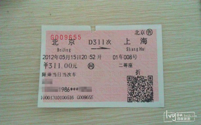 5月15日(周二)晚:8:50,D311次列车,北京——上海