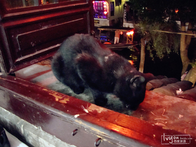 吃饭的时候,跑来一只小黑猫,在我们旁边,喂了它一点鸡肉~~