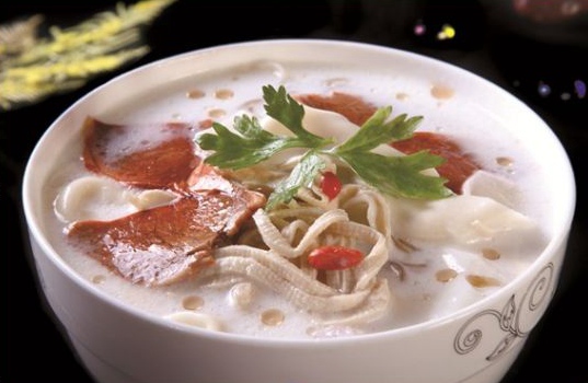 河南烩面是一种荤、素、汤、菜、饭兼而有之的传统风味小吃,有羊肉烩面、三鲜烩面、五鲜烩面等多种类型 。烩面的精华全在于汤,下面时,锅内放原汁肉汤,将面拉成薄条入锅,上桌时外带香菜、辣椒油、糖蒜等小碟。